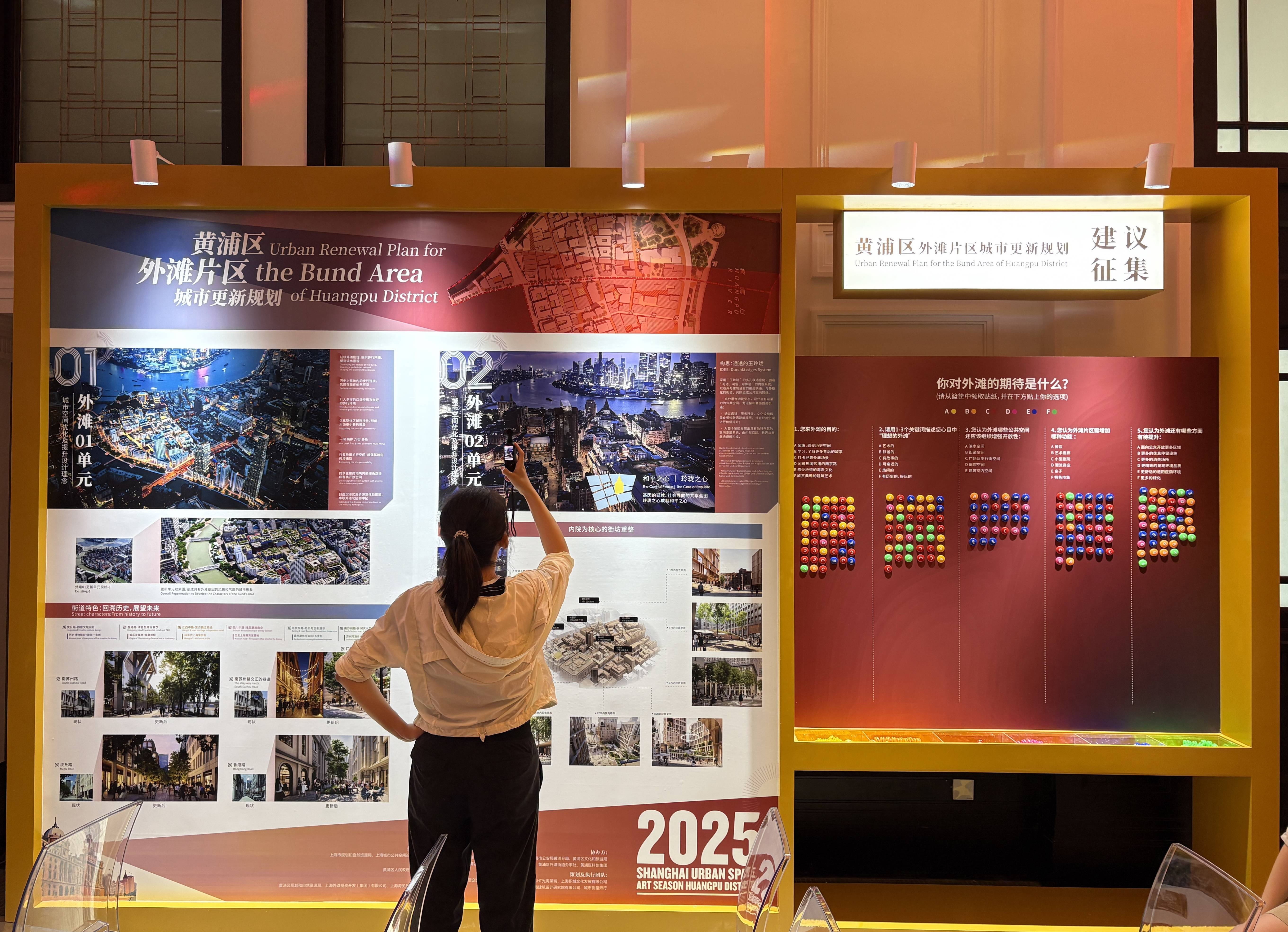 展览内的外滩片区城市更新规划建议征集。新华社记者 王辰阳 摄本次展览将持续至11月28日,全程免费向公众预约开放,目前国庆中秋假期间的预约已满。