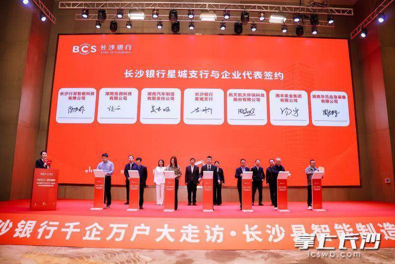 现场,长沙银行带来了专项金融服务方案宣讲,详细介绍针对智能制造产业的产品和政策。签约环节中,长沙经开区管委会、长沙县人民政府与长沙银行达成战略合作。长沙银行星城支行与航天凯天环保、湖南汽车制造等12家企业代表签约。